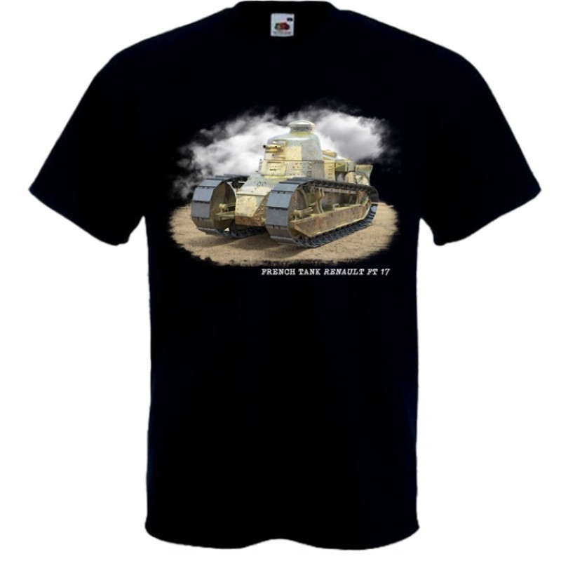 Motiv z Army Collection zobrazuje Renault FT 17 v detailním provedení s důrazem na typickou siluetu, pásový podvozek a kompaktní věž, přičemž tmavý podklad trička podtrhuje historický charakter stroje bez přehnaných efektů. Design osloví fanoušky vojenské historie, modeláře i zájemce o obrněnou techniku z období první světové války.