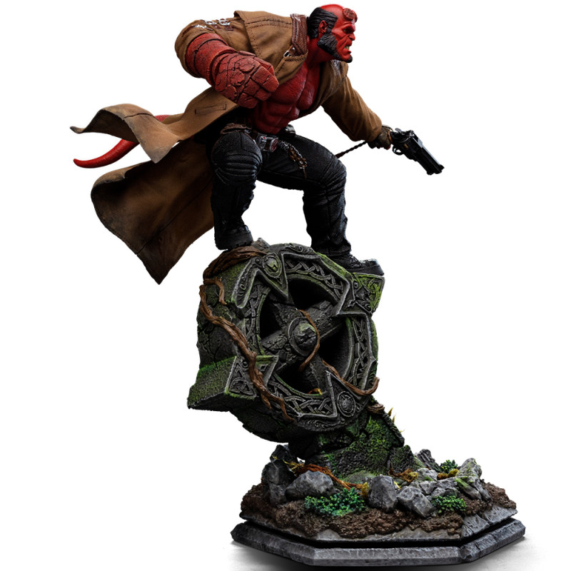 Tato sběratelská socha inspirovaná filmem Hellboy II: The Golden Army zachycuje Hellboye v ikonické póze – stojí na náhrobním kříži, připravený zaútočit svou kamennou pěstí a drží svou zbraň Big Baby.