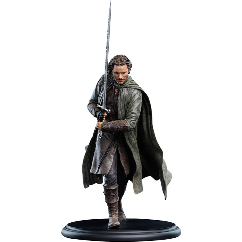 Od napětí v postoji až po precizně zpracovaný meč Andúril – každý detail působí dojmem pohybu připraveného vyrazit vpřed. Socha zachycuje Aragorna při pochodu k Minas Tirith, podpořeného Armádou mrtvých, v jedné z nejepičtějších scén celé trilogie.