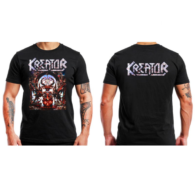 Tričko Kreator je manifest čisté thrash metalové agrese, která otřásá scénou už od 80. let. Přední potisk přináší ikonický artwork kapely, zatímco zadní strana nese další silný vizuál, díky kterému se toto tričko stává prémiovým kouskem v každém šatníku fanouška. Černý podklad zvýrazňuje detaily grafiky a dodává tričku nekompromisní metalový vzhled. Toto není jen oblečení – je to odkaz, že thrash metal žije a že Kreator patří mezi ty, kteří psali jeho historii.