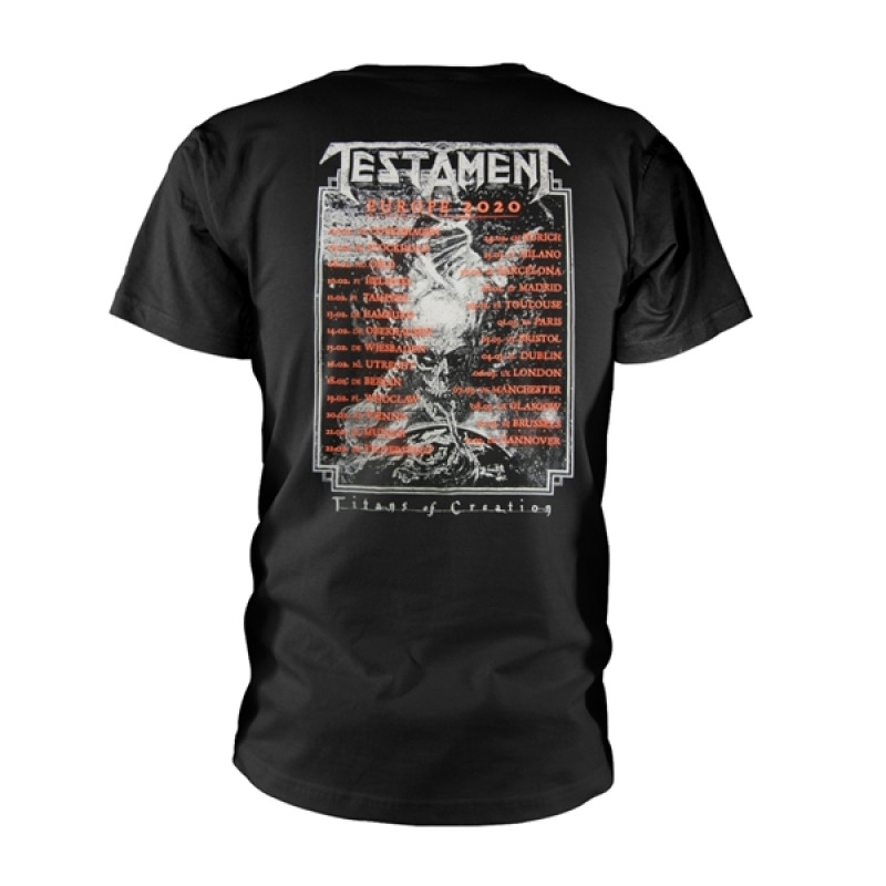 Testament patří mezi nejrespektovanější kapely thrash metalové scény. Jejich hudba kombinuje rychlost, agresi a technickou preciznost s temnou atmosférou a výraznými riffy. Kapela si vybudovala pověst dlouhodobé kvality a neustálého vývoje bez ztráty thrash metalového základu. Tričko Testament je symbolem poctivého metalu s důrazem na muzikantskou úroveň.